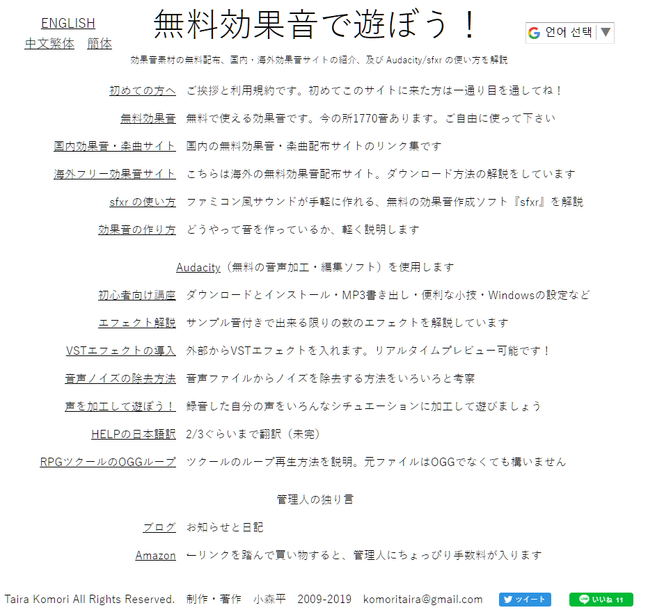 | 효과음과 8명의 목소리 소재 사이트 効果音ラボ (0) | 2019.08.18 |