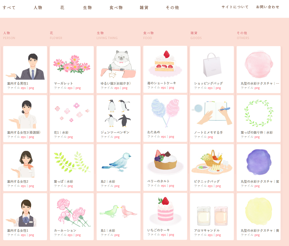밝은 팔레트 느낌의 일러스트 소재들을 배포하는 사이트 입니다.