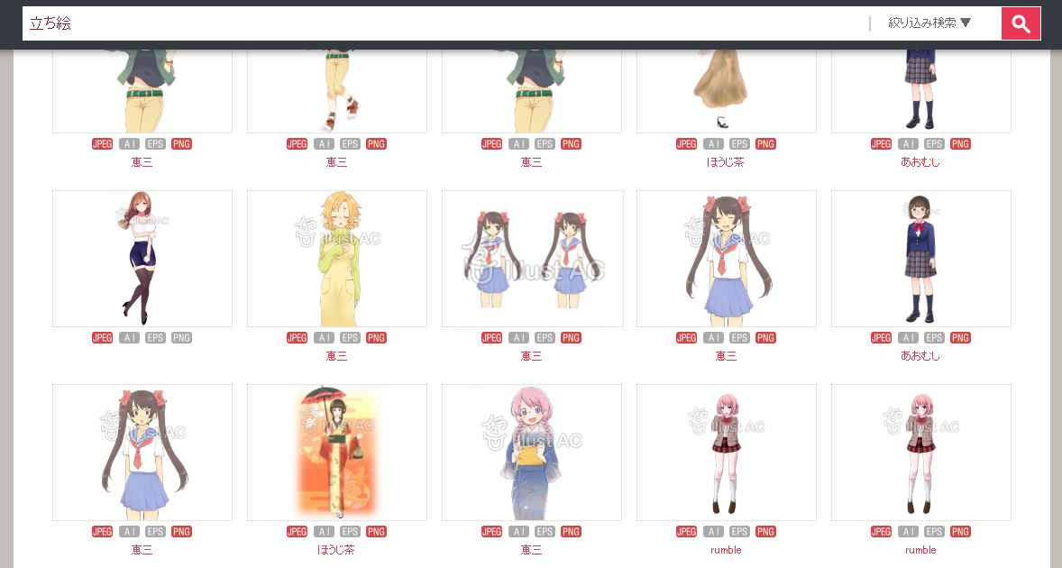 혹은 사이트 내 검색창에 立ち絵 검색