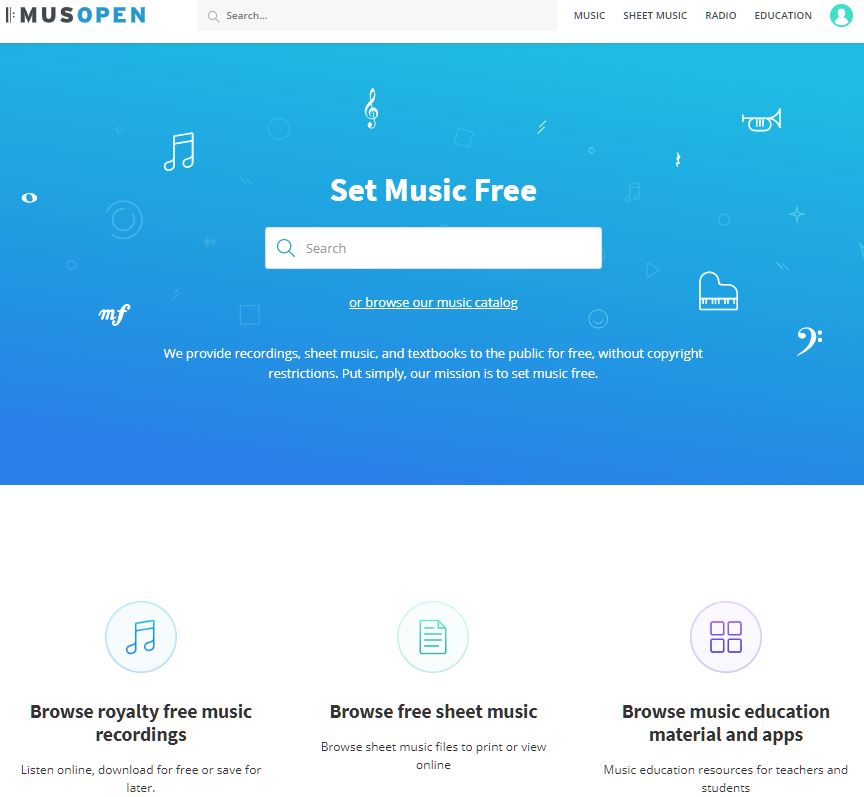 다양한 클래식 음악들이 악기, 작곡가, 장르별로 정렬되어 있으며 원하는 음악을 선택하면 악보가 나오고 악보, 녹음된 음악을 배포하는 사이트 입니다.