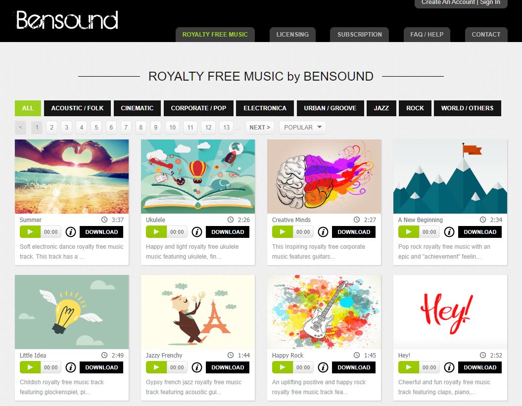 Bensound.com 출처를 밝히고 Creative Commons License Attribution-NoDerivs 3.0 라이센스를 적용하는 한에서 무료로 음악을 사용 할 수있는 사이트 입니다.