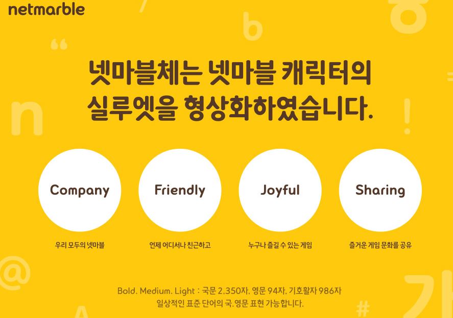 게임회사 넷마블의 캐릭터를 형상화한 넷마블체 입니다.
