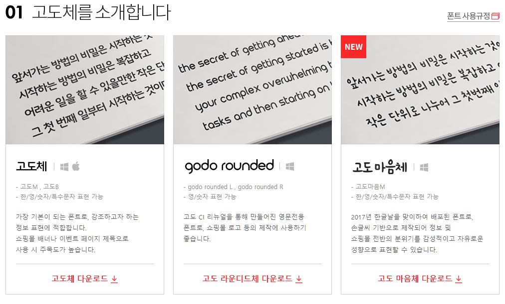 godo:디자인에서 제공하는 무료 폰트 고도체 입니다.