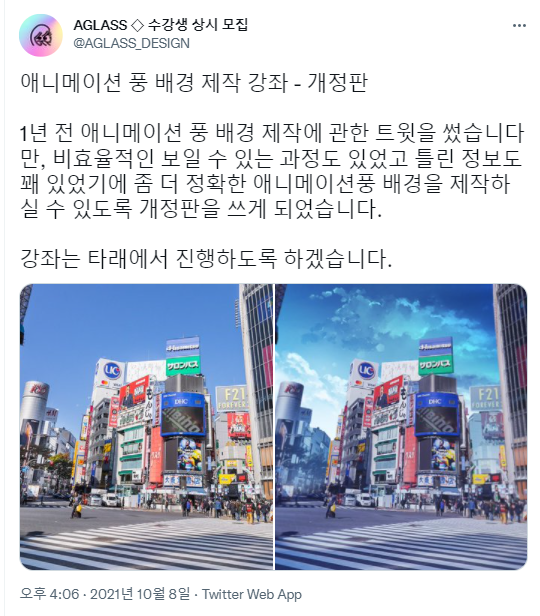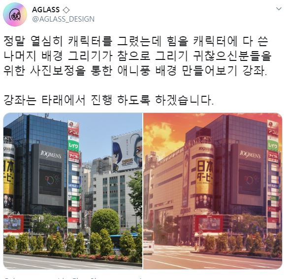 트위터 AGLASS님의 애니풍 배경 (낮) 강좌