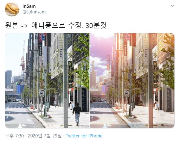 트위터 InSam님의 포토샵을 사용하는 애니풍 수정