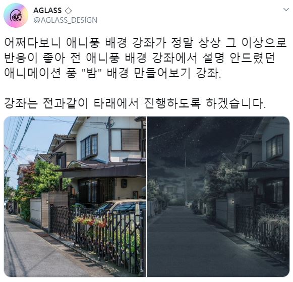 트위터 AGLASS님의 애니풍 배경 (밤) 강좌