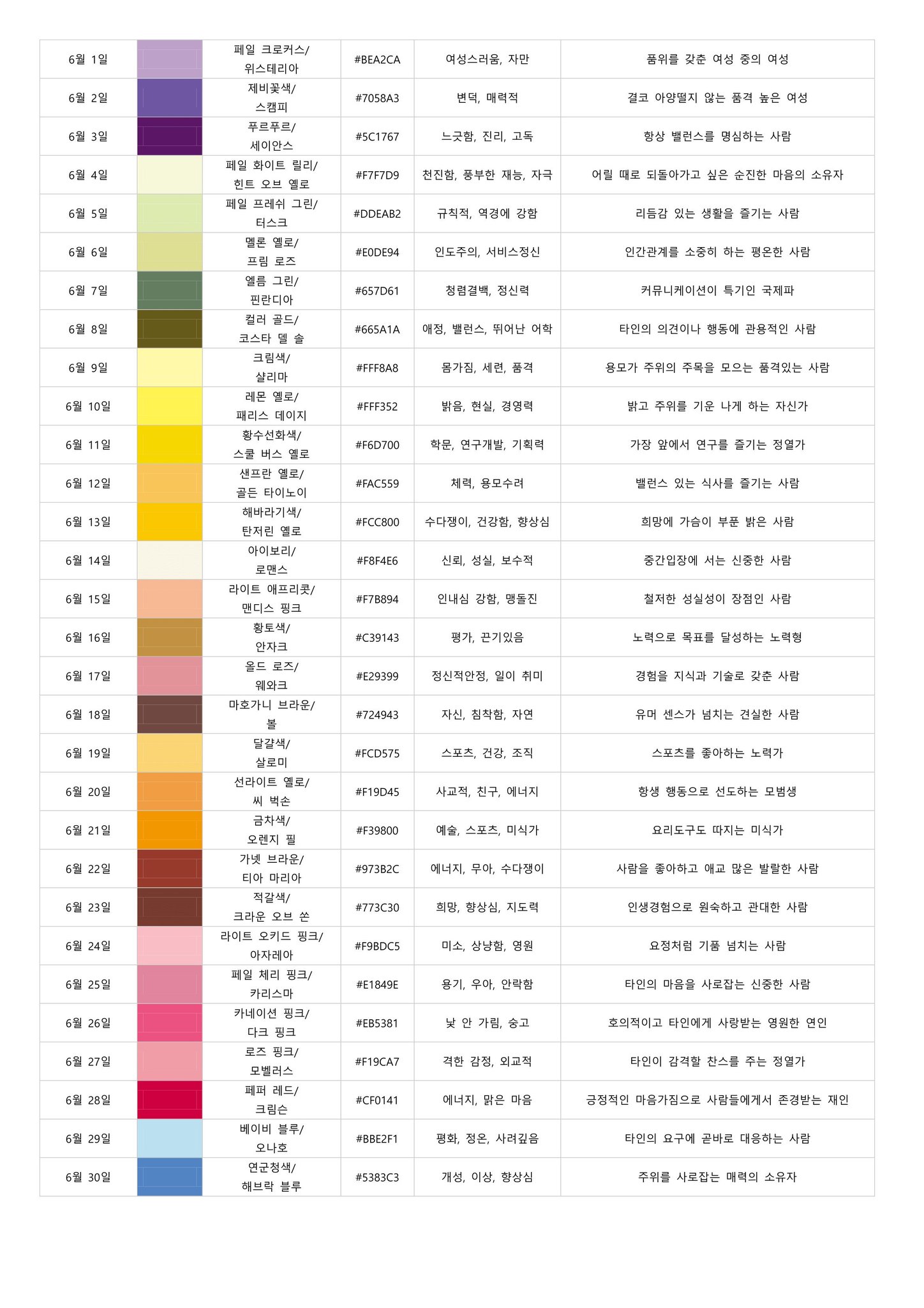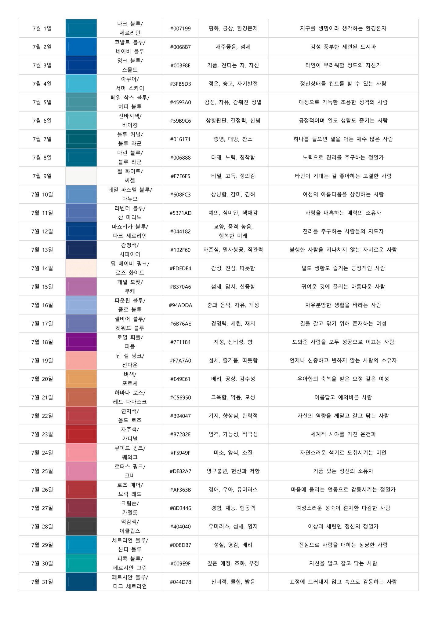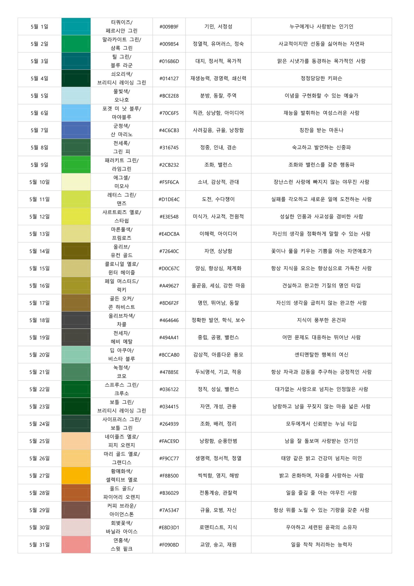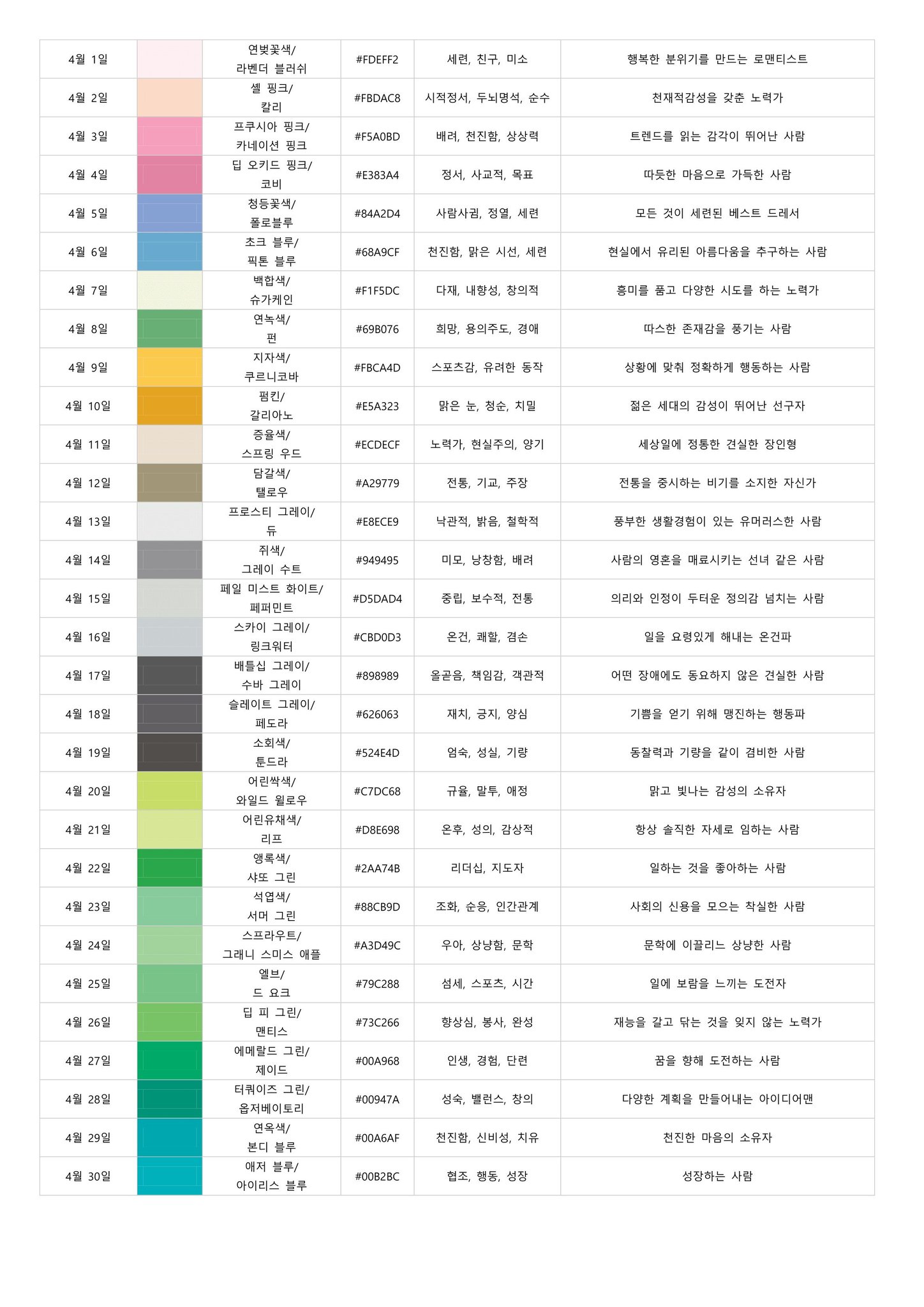 사이트에 들어가면 한눈에 모든 월일별로 컬러를 보실 수 있습니다