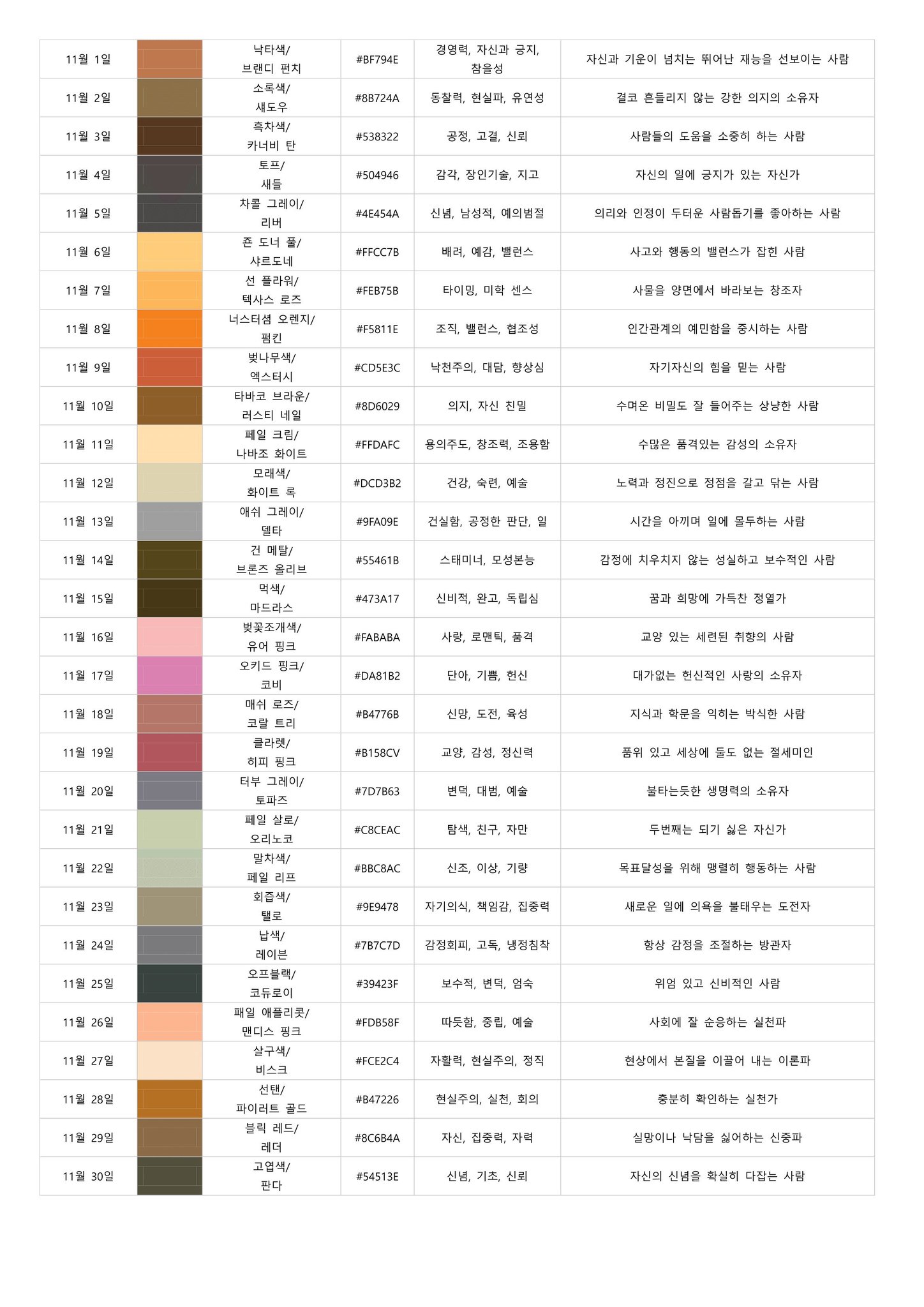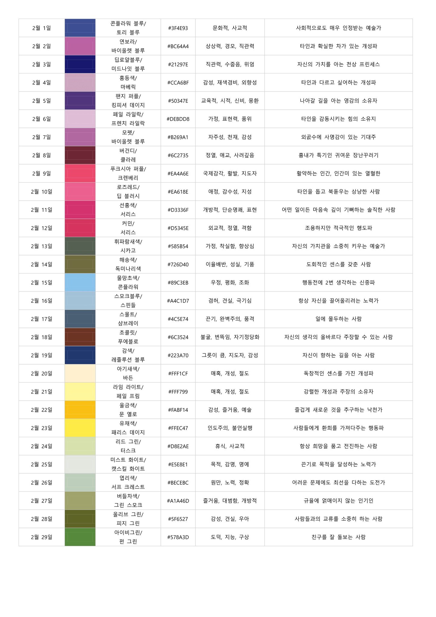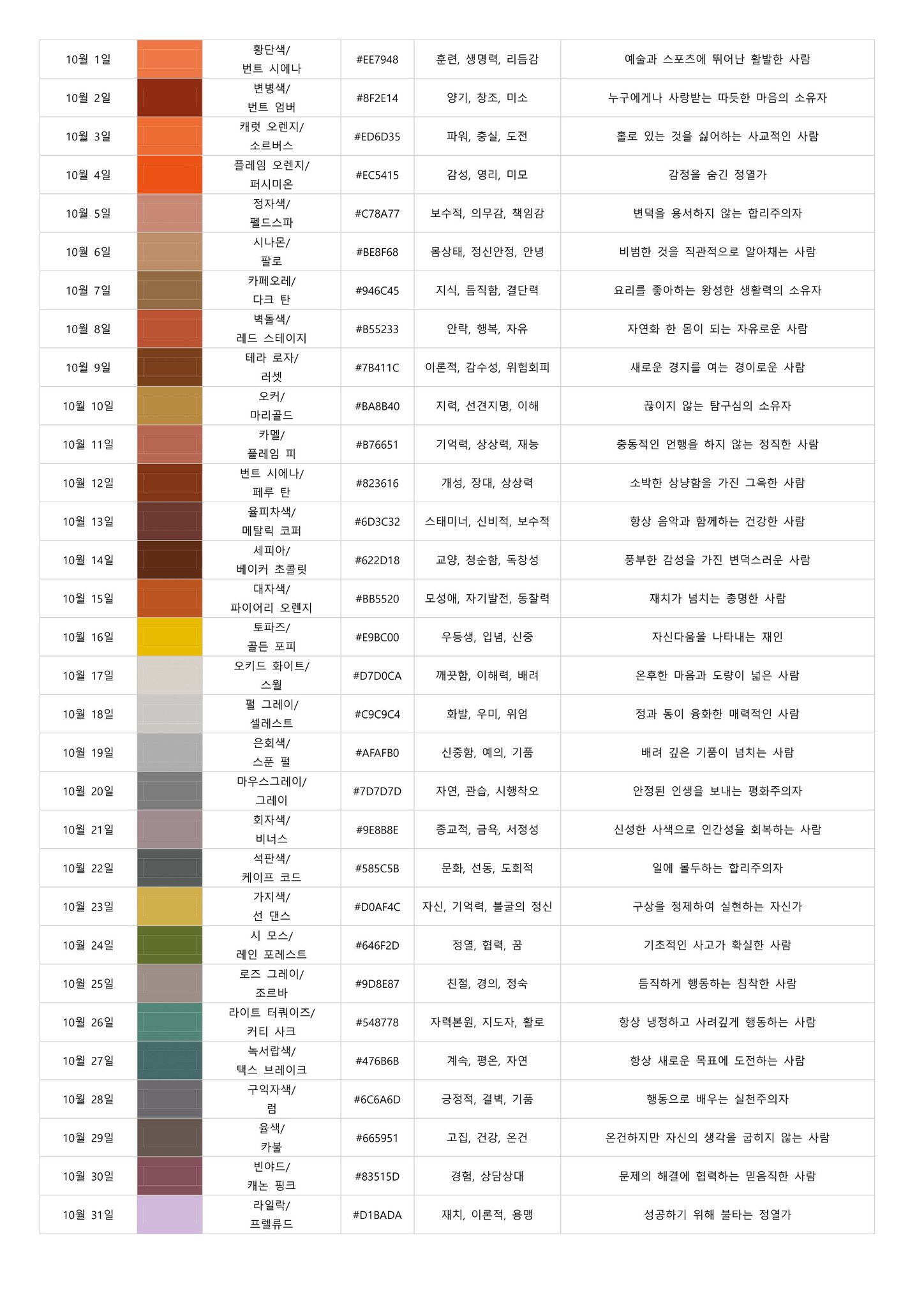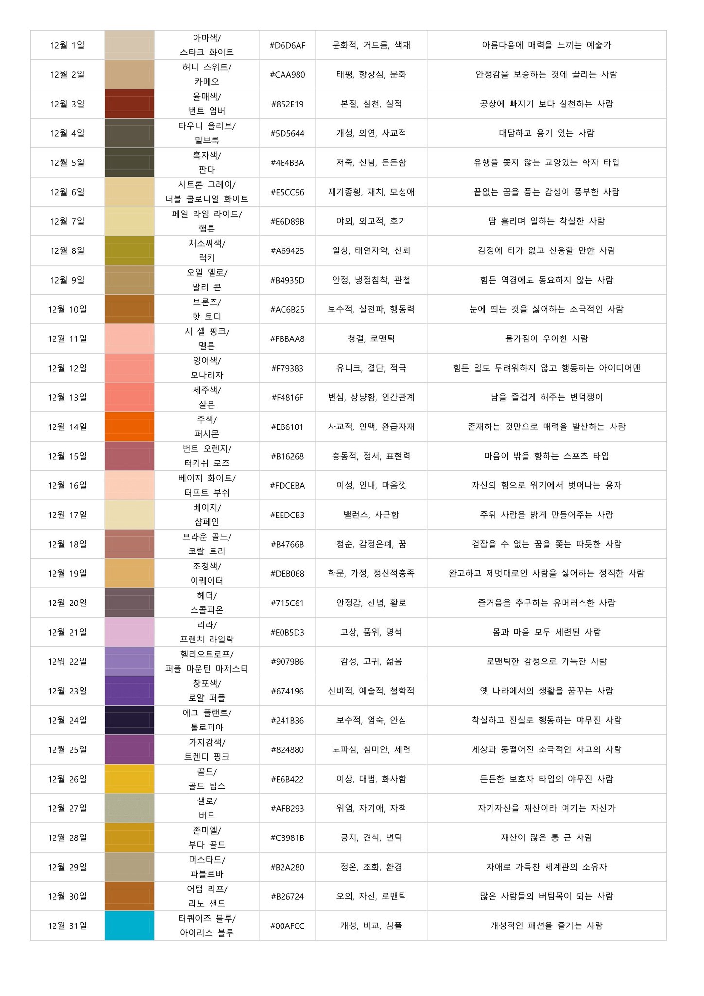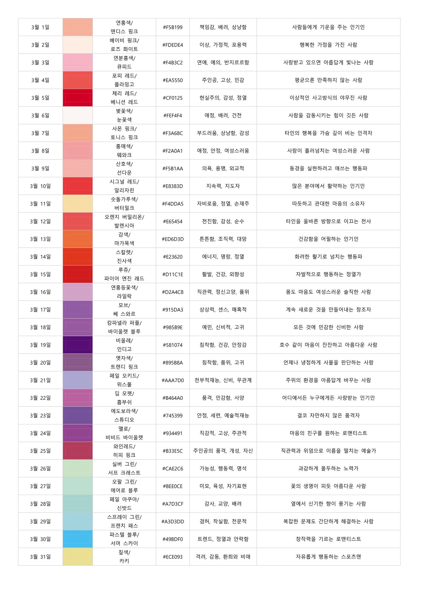 사이트에 들어가면 한눈에 모든 월일별로 컬러를 보실 수 있습니다