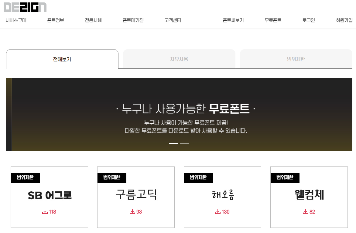 디자인210에서 다양한 무료 폰트를 제공해주고 있습니다.
