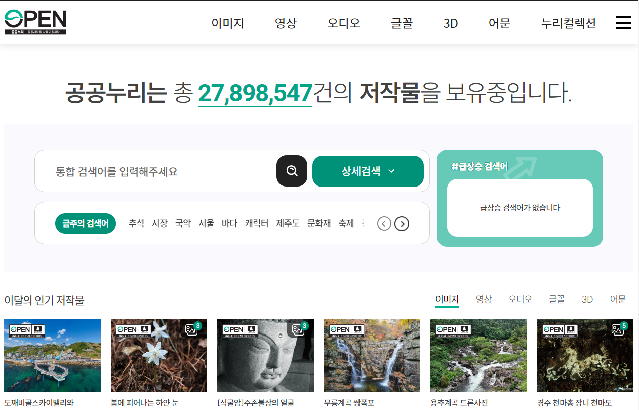 공공누리는 국가, 지방자치단체, 공공기관이 4가지 공공누리 유형마크를 통해 개방한 공공저작물 정보를 통합 제공하는 서비스입니다.