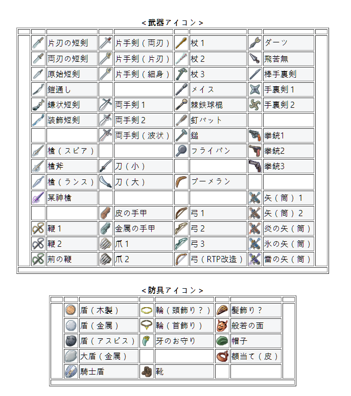 무기, 방어구, 반지, 상태이상, 기타 아이콘과 건물 소재, 몬스터 그래픽 등을 배포하는 사이트 입니다.